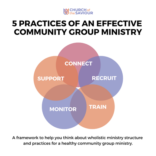 Our Community Group Advisory Team uses a framework called “5 Practices of an Effective Community Group Ministry” to help us think about wholistic ministry structure and practice for a healthy community group ministry.